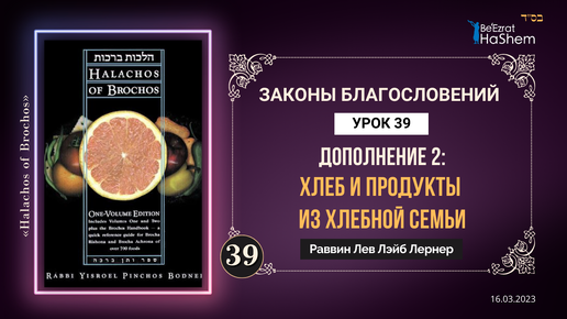 𝟑𝟗. Дополнение 2: Хлеб и продукты из хлебной семьи | Законы Благословений | Рабби Лев Лэйб Лернер