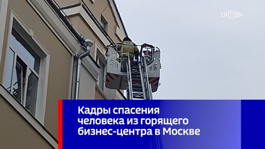 Кадры спасения человека из горящего бизнес-центра в Москве