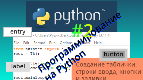 Программирование на Python, добавление таблички, строки ввода и кнопки с действием.Заливка окна.