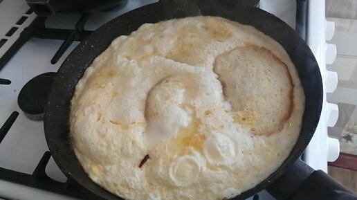 Омлет с жареной булкой на завтрак. Приятного аппетита.