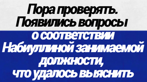 Пора проверять. Появились вопросы о соответствии Набиуллиной занимаемой должности, рассказываю, что удалось выяснить