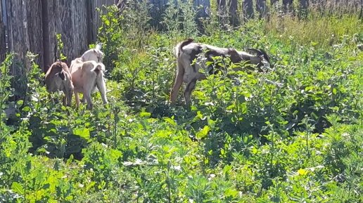Пасём на коляске козлят. Закончила с картошкой. Получила посылки.