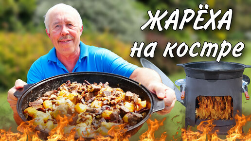 СЫТНАЯ ЖАРЕХА из СЕРДЦА и ПЕЧЕНИ с КАРТОФЕЛЕМ в СКОВОРОДЕ на КОСТРЕ