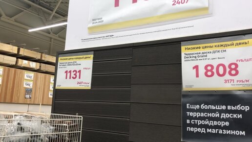 Большой выбор террасной доски (декинга) в Леруа Мерлен. Ассортимент и цены в магазине. На улице выбор гораздо больше.