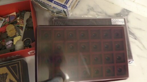 Обзор флакированного планшета, для хранения пуговиц и знаков.