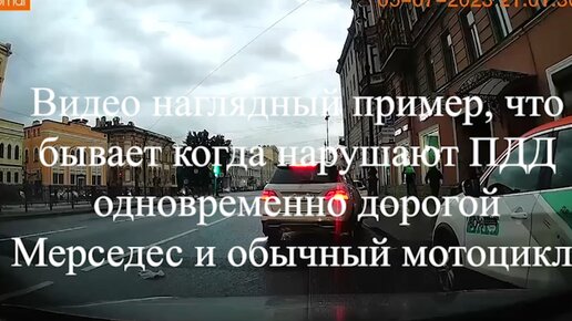 Видео наглядный пример, что бывает когда нарушают ПДД одновременно дорогой Мерседес и обычный мотоцикл.