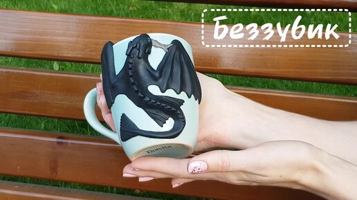 Кружка с декором Беззубик Рыбоглот из Как приручить дракона. Чашка Ночная фурия из полимерной глины.