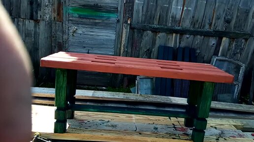 Как покрасить в два цвета лавочку для занятий спортом.