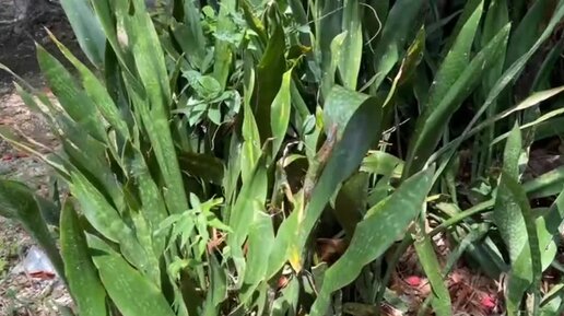 Цветок «тещин язык» растет в мексиканском парке. Шумные тропические птицы
