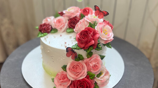 КРАСИВОЕ УКРАШЕНИЕ ТОРТА на любой ПРАЗДНИК 🥰 Белковый крем!
