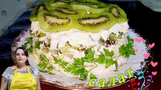 СЛОЁНЫЙ ПРАЗДНИЧНЫЙ САЛАТ С КУРИЦЕЙ И КИВИ 🥝🥔🥚