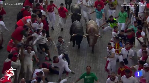 Испания: Бег от быков в Памплоне. Второй день: четверо раненых от падения