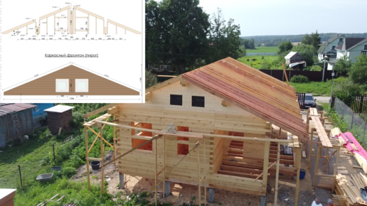 Феникс.. Каркас фронтона, зашивка фронтонов,стропила, самцы и слеги.