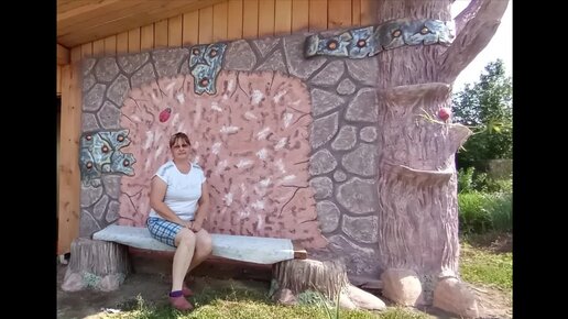 Оформление бани.декоративная штукатурка. лавочки из бетона. мастер Наталья.