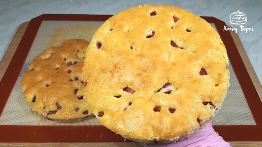 Влажный бисквит "Эммануэль" с клубникой. Необычный рецепт бисквита для тортов, пирожных и капкейков. Можно готовить с разными ягодами