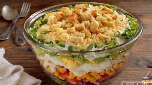 Многогранный вкус и не менее замечательный вид! Слоёный салат с курицей.