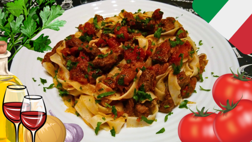 ПАСТА ТАЛЬЯТЕЛЛЕ С ГОВЯДИНОЙ И ТОМАТАМИ / Вкусный и сытный ужин в итальянском стиле