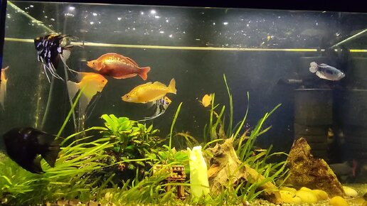 Аквариум 170 литров.И снова так любимый рыбками огурчик.