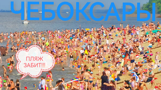 Пляж на Волге полностью забит людьми. Посмотрите сколько людей. Чебоксары