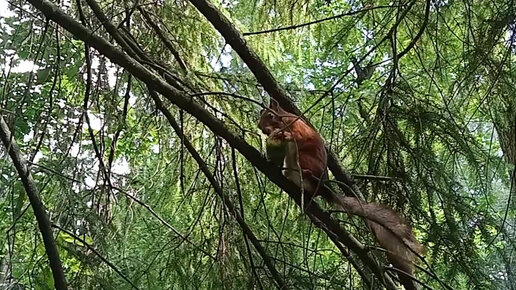 Белка обедает