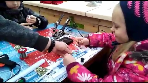 Делаю светящийся меч на новогоднем мастер-классе на Тверском бульваре (мне 5 лет)