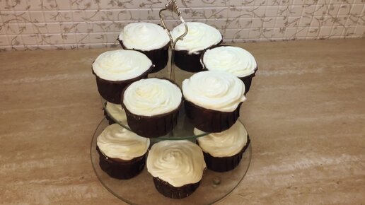 Капкейки с кремом из творожного сыра и сливок! Быстрый рецепт!