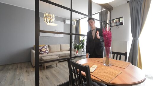 легкая стильная перегородка в стиле лофт/зонирование в однокомнатной квартире/дизайн в квартире студии