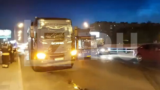 Опубликованы кадры с места ДТП в Москве, где столкнулись грузовик с автобусом