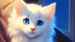 Белый пушистый котёнок с голубыми глазами сидит у меня на плече