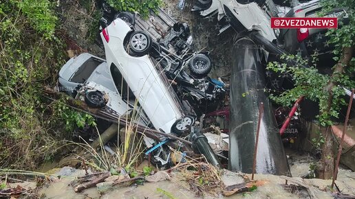 Груды металла вместо автомобилей: очевидцы сняли последствия потопа в Сочи