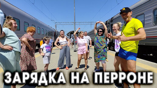 ПАССАЖИРЫ ПОЕЗДА ДЕЛАЮТ ЗАРЯДКУ НА ПЕРРОНЕ / ФИТНЕС / СПОРТ