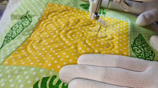 Свободно-ходовая стежка подставки под горячее. Отработка ранее показанных на бумаге рисунков.