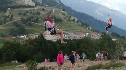 Спуск по натянутому тросу на плато горы Ай-Петри.