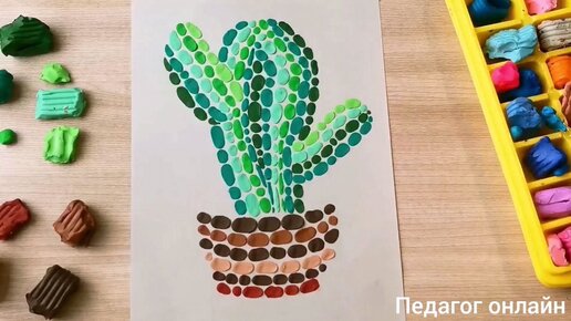 Рисуем кактус пластилином. Лепка для детей. Пластилинография