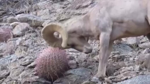 Вот так Алтайский горный баран добирается до мякоти кактуса.