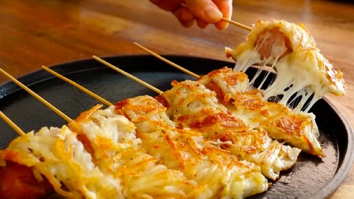 Всего 1 картошка и пару сосисок! 10 минут! Хрустящие картофельные шашлычки! Вкусный завтрак!