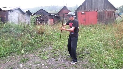 Работа оружием в слепую отработка ударов по дереву.