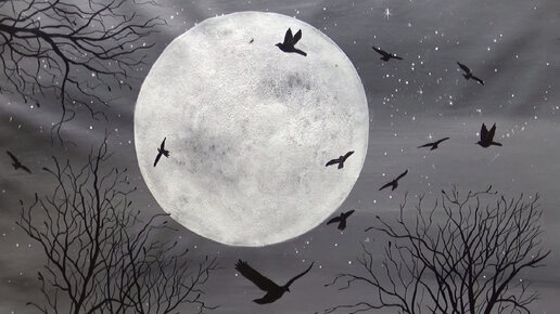 Лунная ночь. Картина на холсте для начинающих. Живопись акрилом от Ренджита Ануп
