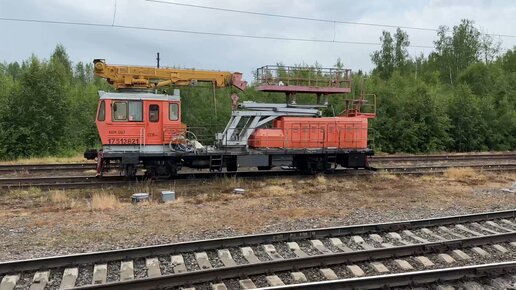 Автомотрисы 1АДМ-1.3 в ожидании работы по замене опор контактной сети. Станция Свеча Северной железной дороги