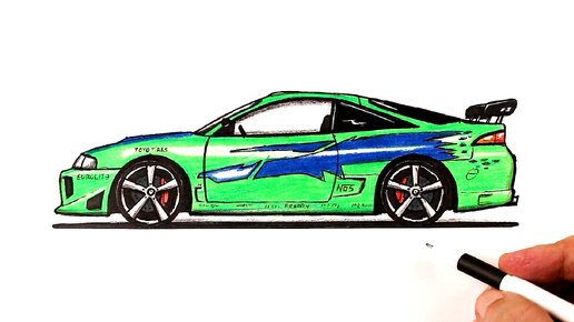 Как нарисовать машину Митсубиси Эклипс из Форсажа