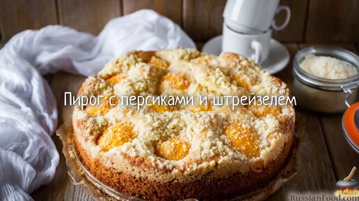 Нежный и воздушный, с хрустящей корочкой. Пирог с персиками и штрейзелем.