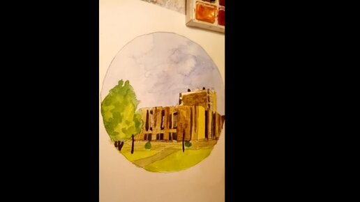 Эскиз декоративной тарелки "Театр им. Островского" в цветовом варианте