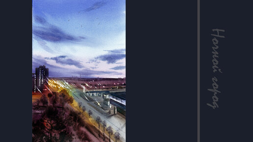 Как нарисовать ночной город акварелью #ночнойгород #акварелью