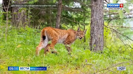 Красноярский фотограф запечатлел рысь с детёнышем
