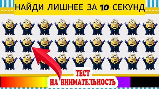 ТЕСТ НА ВНИМАТЕЛЬНОСТЬ МИНЬОНЫ! НАЙДИ ЛИШНЕЕ ЗА 10 СЕКУНД ! ПРОВЕРЬ СВОЕ ЗРЕНИЕ !