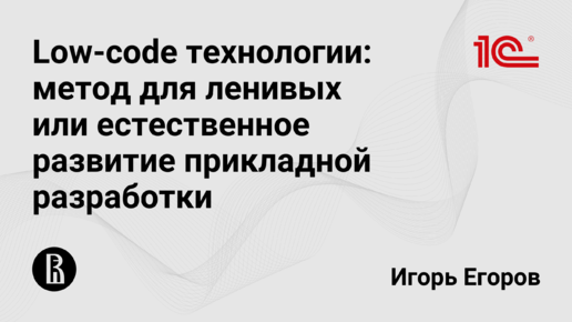 Low-code технологии: метод для ленивых или естественное развитие прикладной разработки (Игорь Егоров, 1С)
