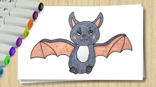Как легко нарисовать милую ЛЕТУЧУЮ МЫШЬ/Рисование для начинающих