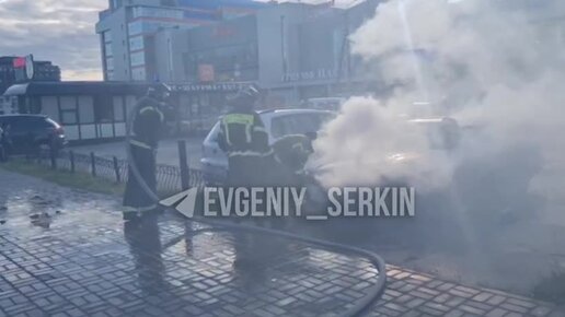 Сегодня вечером в центре Обнинска у «Триумф Плаза» загорелся автомобиль «Ниссан». Никто не пострадал