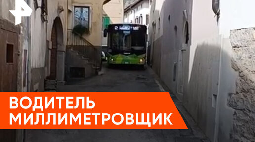 Огромный автобус на узкой улочке в Италии