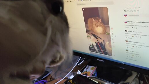 Путька смотрит на рыжую кошку, наверное влюбился👇👉👈❤ Работать в Дзене интересно🤔💭